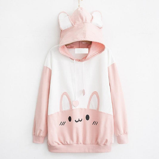 Women Casual Rabbit Hoodie High Quality Women Cartoon Pullover Oversized Hoodie Sweatshirt