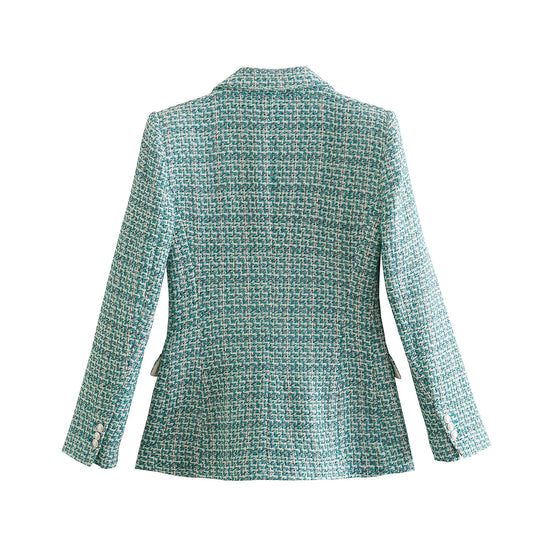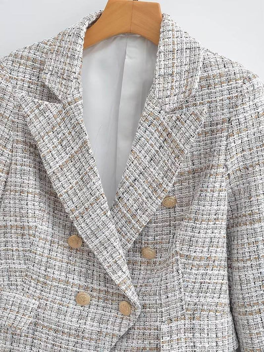 Women's Textured Double-breasted Wool Casual Blazer 2024 New Top Female Fashion Slim-fit Coat