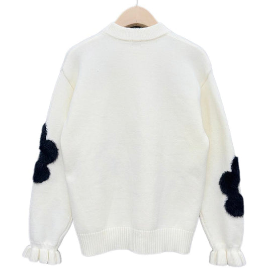 Women's Soft Touch Pullover with Flower Shape Jacquard and Ruffled Cuff for Winter Knitwear