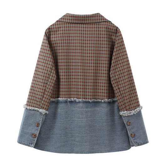 TWOTWINSTYLE Temperament Plaid Casual Loose Patchwork Denim Colorblock Ladies Blazer