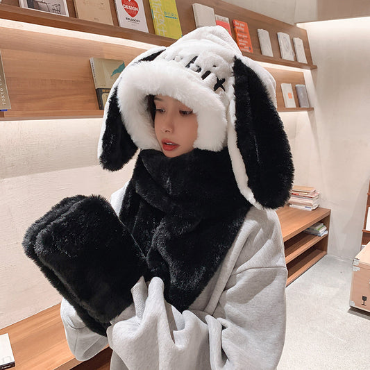 Cute Rabbit Ears Scarf Scarf Gloves All In One