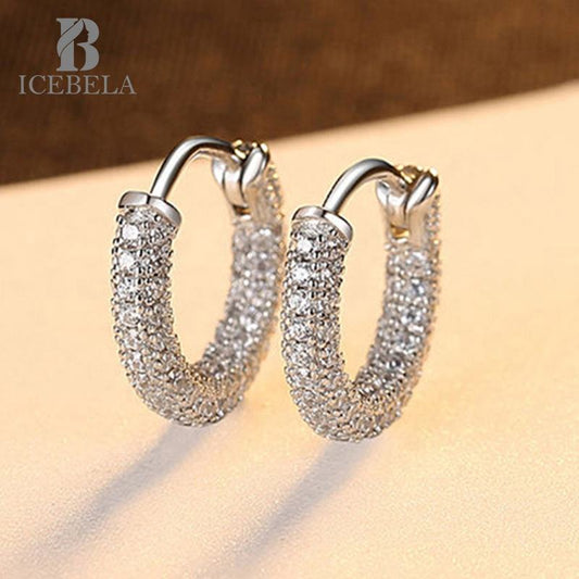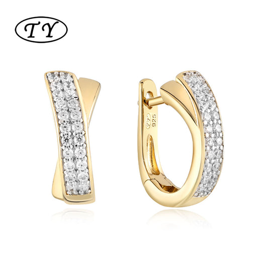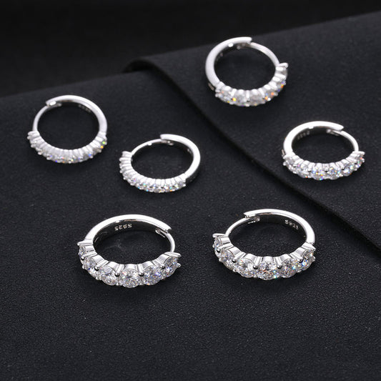Ear Clip Korean Style Light Luxury S925 Sterling Silver Earring Zircon Inlaid Hoop Earrings For Girls