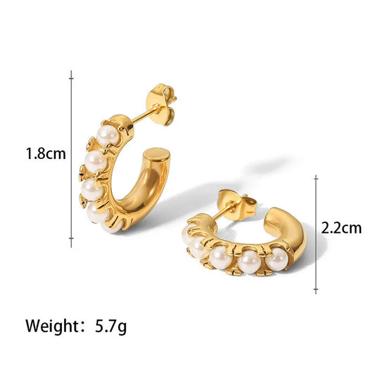 Classic Waterproof Gold Plated Stainless Steel C-Shaped Basic Pearl Hoop Earrings for Women Fashion Jewelry