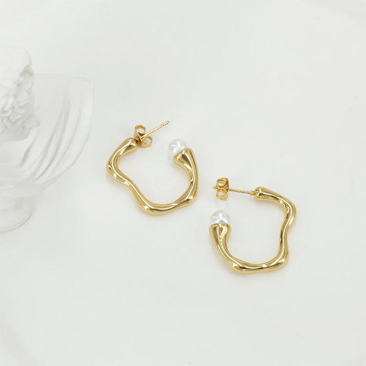 18K Gold Plated Texture Pearl Earrings Stainless Steel Hoop Irregular Statement Dangle Stud Dainty Jewelry Women Girls