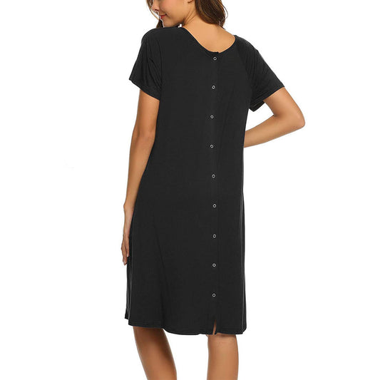 Women Delivery and Nursing Gown Labor Hospital Breastfeeding with Button Short Sleeve Maternity Clothes Nursing Dress