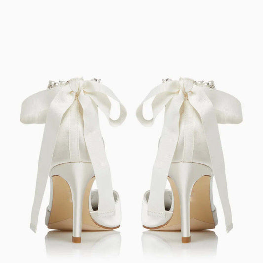 party stiletto heels slik material pointed toe bow tie white luxury women's wedding shoes