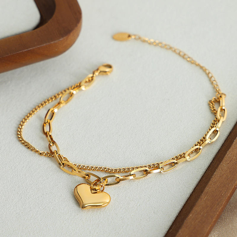 Fashion Stainless Steel Beaded Bracelets with Gold Plating Charms Love Pendant Bracelet for Women