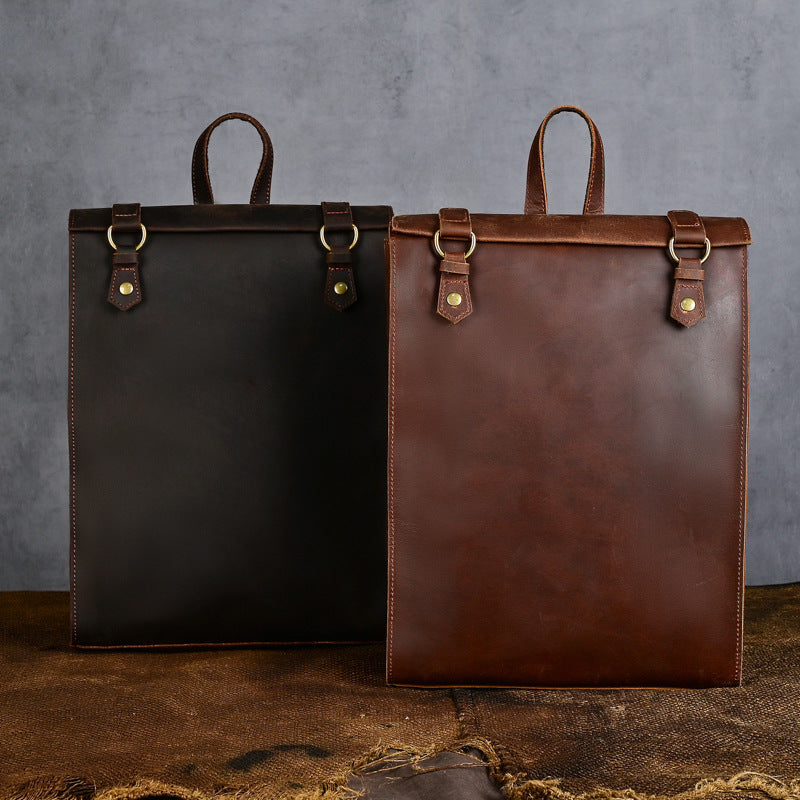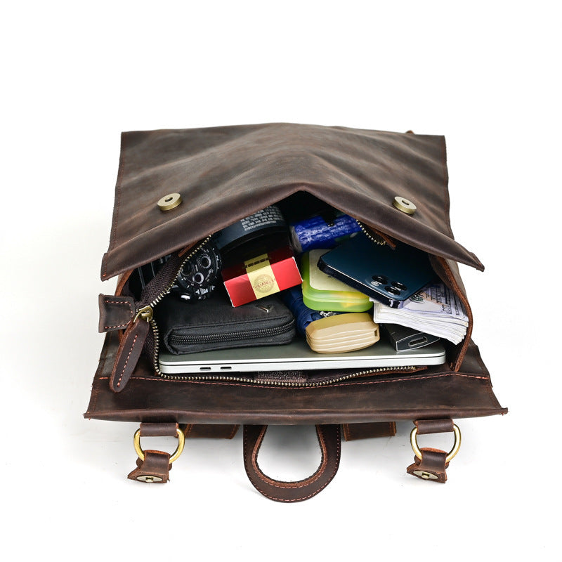 Crazy Horse Leather Men's Vintage Backpack Large Capacity