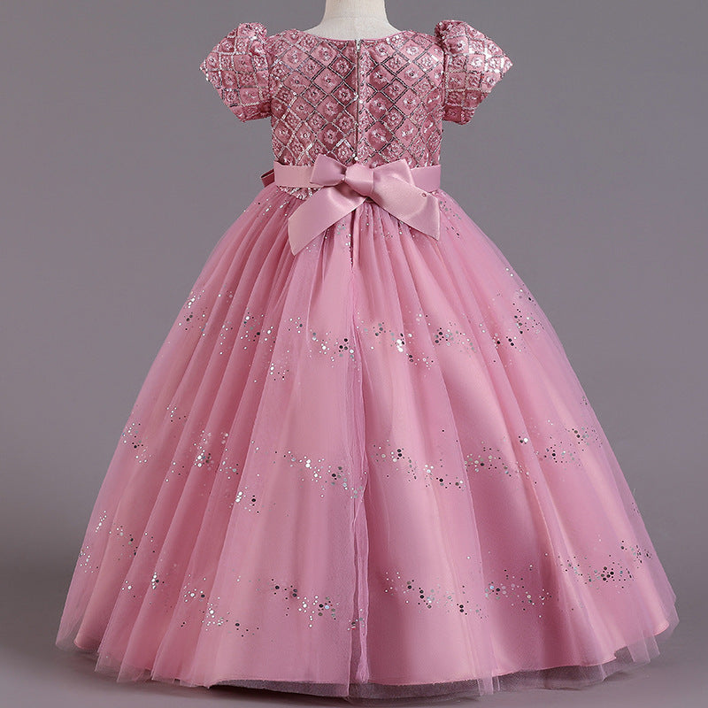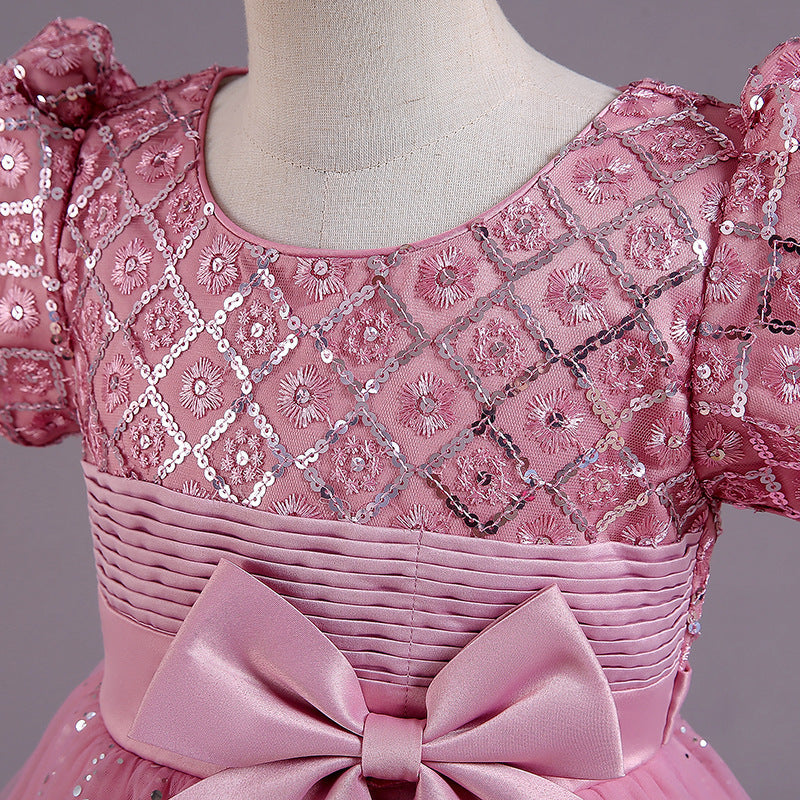 Girls' Fashion Sequin Bow Mesh Dress
