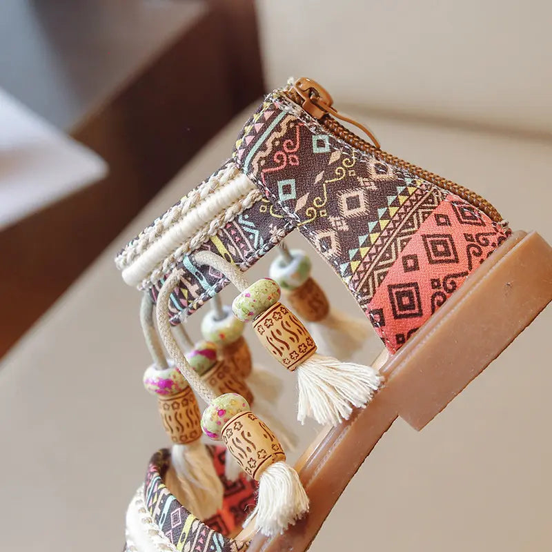 Girls Ethnic Retro Sandals Children Gladiator Sandals Fashion Kids Tassels Princess Shoes
