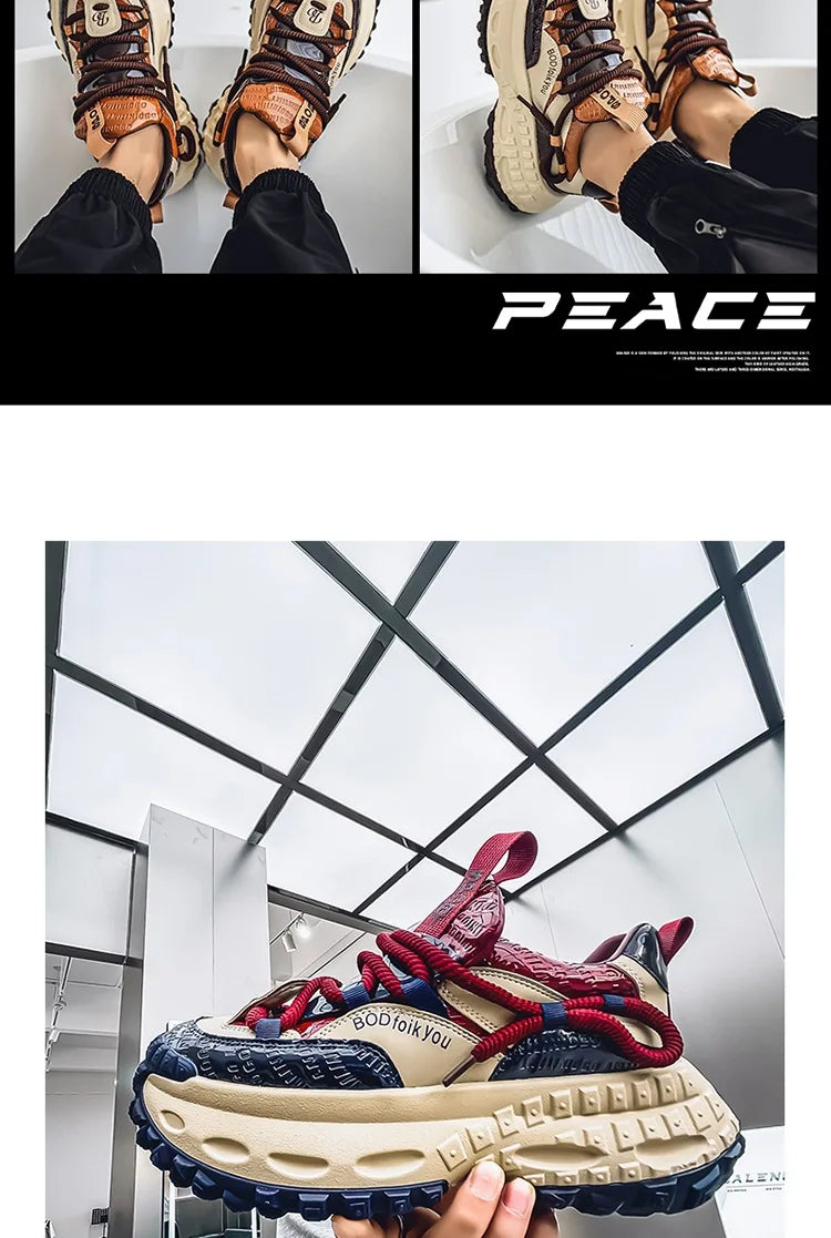 New Thick Soled Height Increasing Men's Casual Shoes 2025 Spring Color Blocked Comfortable Fashion Trend Low Cut Chunky sneakers
